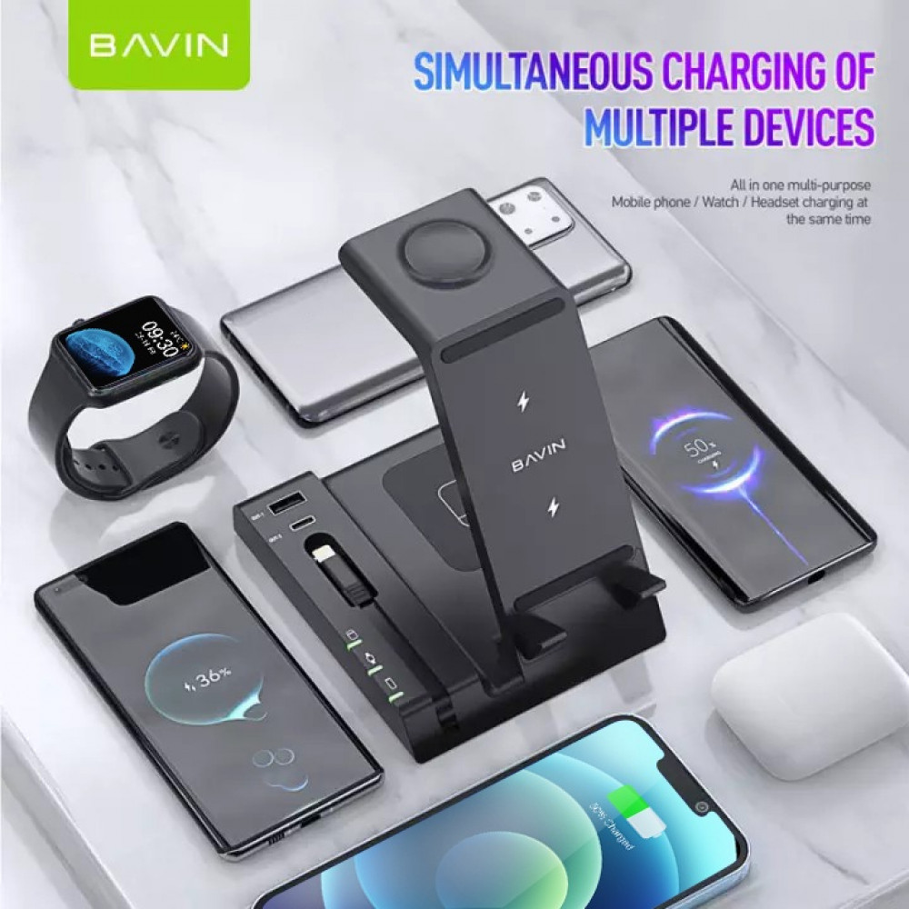 شاحن لاسلكي 6 في 1 بافين هو الحل المثالي لشحن جميع أجهزتك في نفس الوقت. تمتع بكفاءة شحن فائقة مع دعم أجهزة iPhone، iWatch، وAirPods، ووداعًا لعدة شواحن فوضوية!